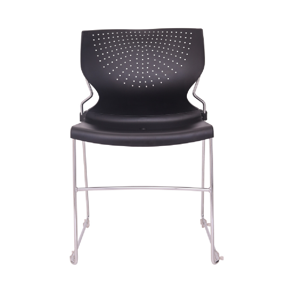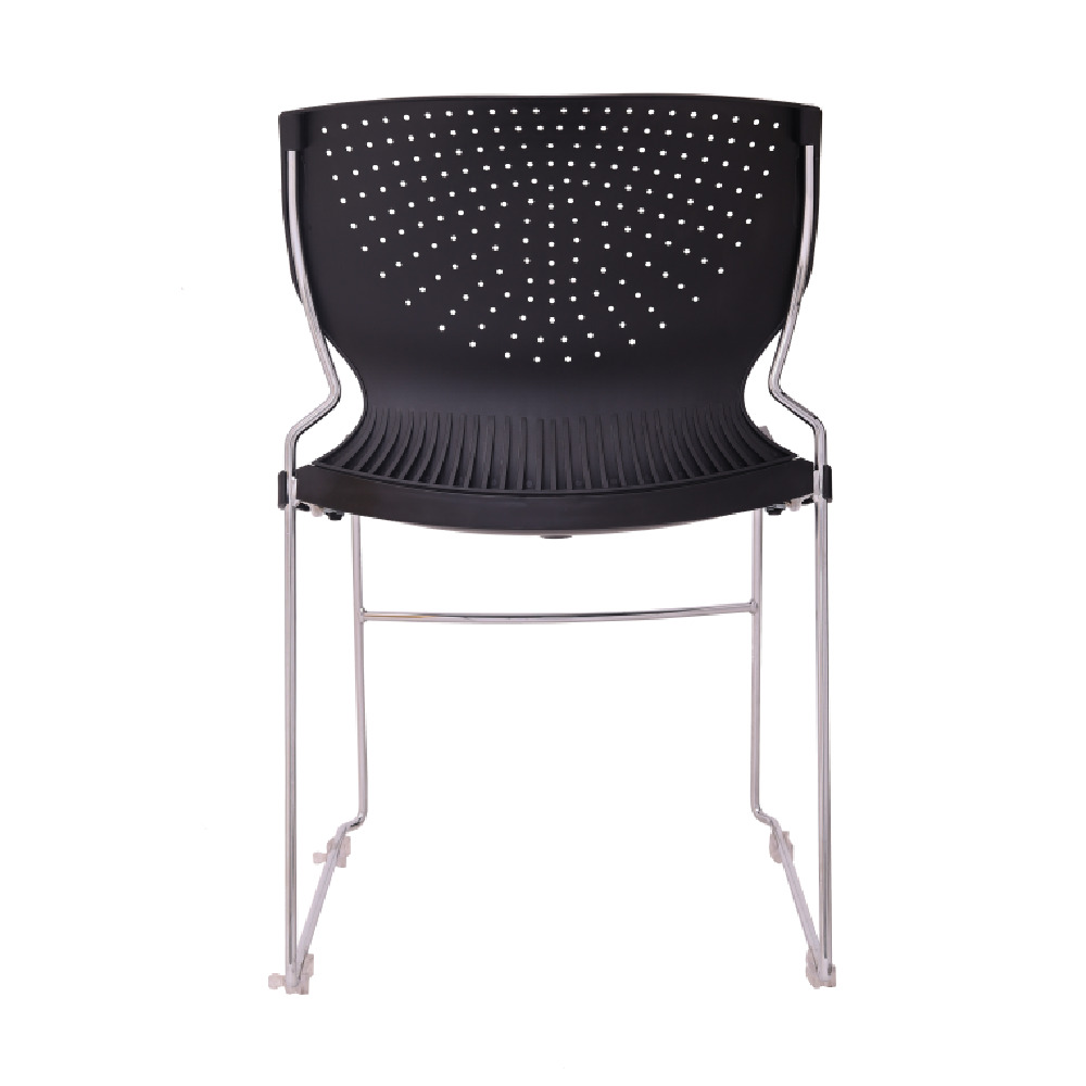 ASIENTO Y RESPALDO: Asiento con medio rizo perimetral a los costados para engargolarlo a la estructura, con diseño en cascada en la parte frontal de la silla para mejorar la circulación sanguínea del usuario. El respaldo con diseño ergonómico y multiperforado con orifi­cios para transpiración del usuario. Fabricados en polipropileno inyectado de primera calidad y Resistencia