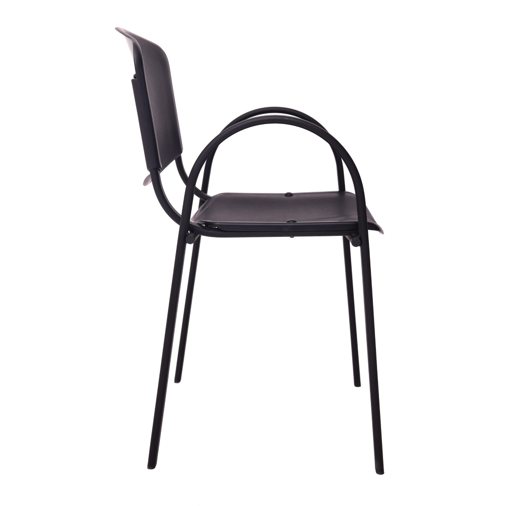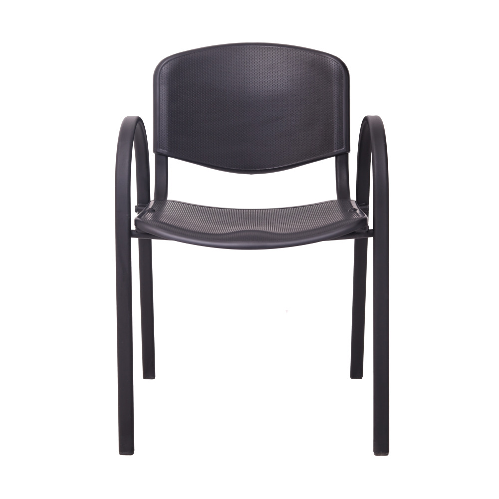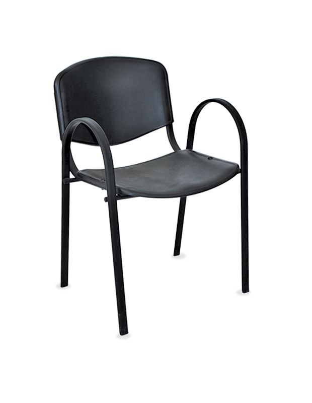 BASE: Con descansabrazos integrados apilable de 4 patas fabricada en tubular de acero oval ponchado calibre 16. Cada juego de patas son fabricadas en una sola pieza con dobles en forma de “U” invertida, unidas por travesaños horizontales en tubular de acero redondo de 16 mm de diámetro
