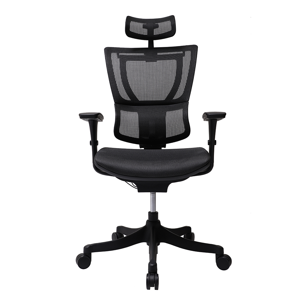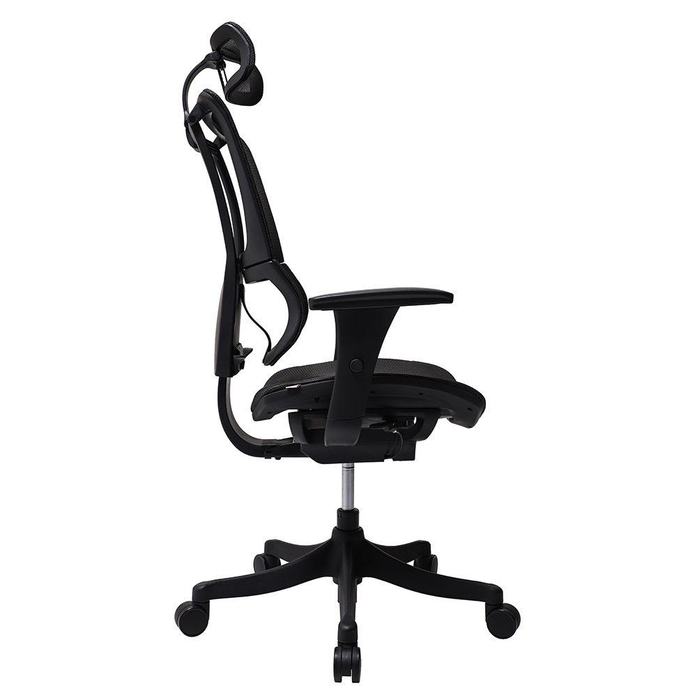 CABECERA: Fabricada en marco de polipropileno de alta calidad, ajuste en altura y ángulo de inclinación en 2 posiciones accionado con botón lateral. Unido al marco del soporte del respaldo en forma de “Y” con tornillos, tapizada en malla 100% poliéster