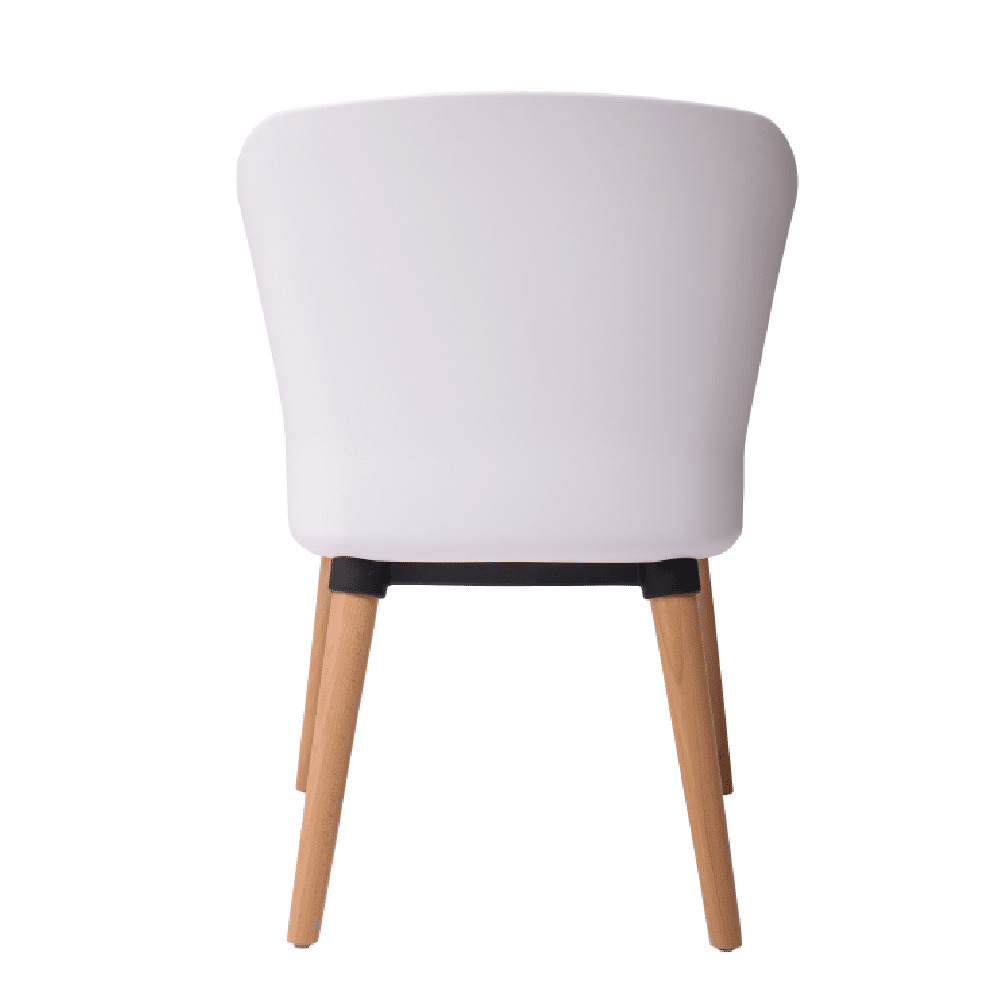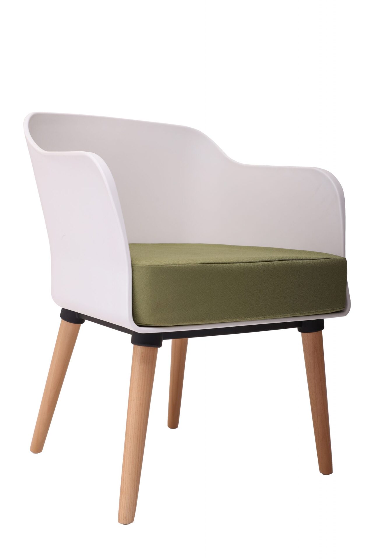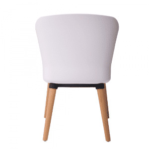 BASE: Sillón con cuatro patas en madera de haya coni­cadas con regatón plástico, inserto roscado para fi­jar con cuatro tornillos, con rondana plana y rondana de presión a marco perimetral fabricado en polipropileno unido al asiento inferior con tornillos.