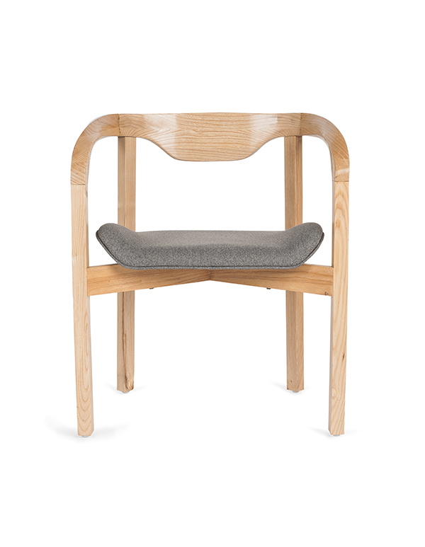 ESTRUCTURA: Estructura fabricada en madera de fresno natural entintado natural essence con cuatro patas con regatón plástico, base en forma de cruz para unión de las patas y asiento.